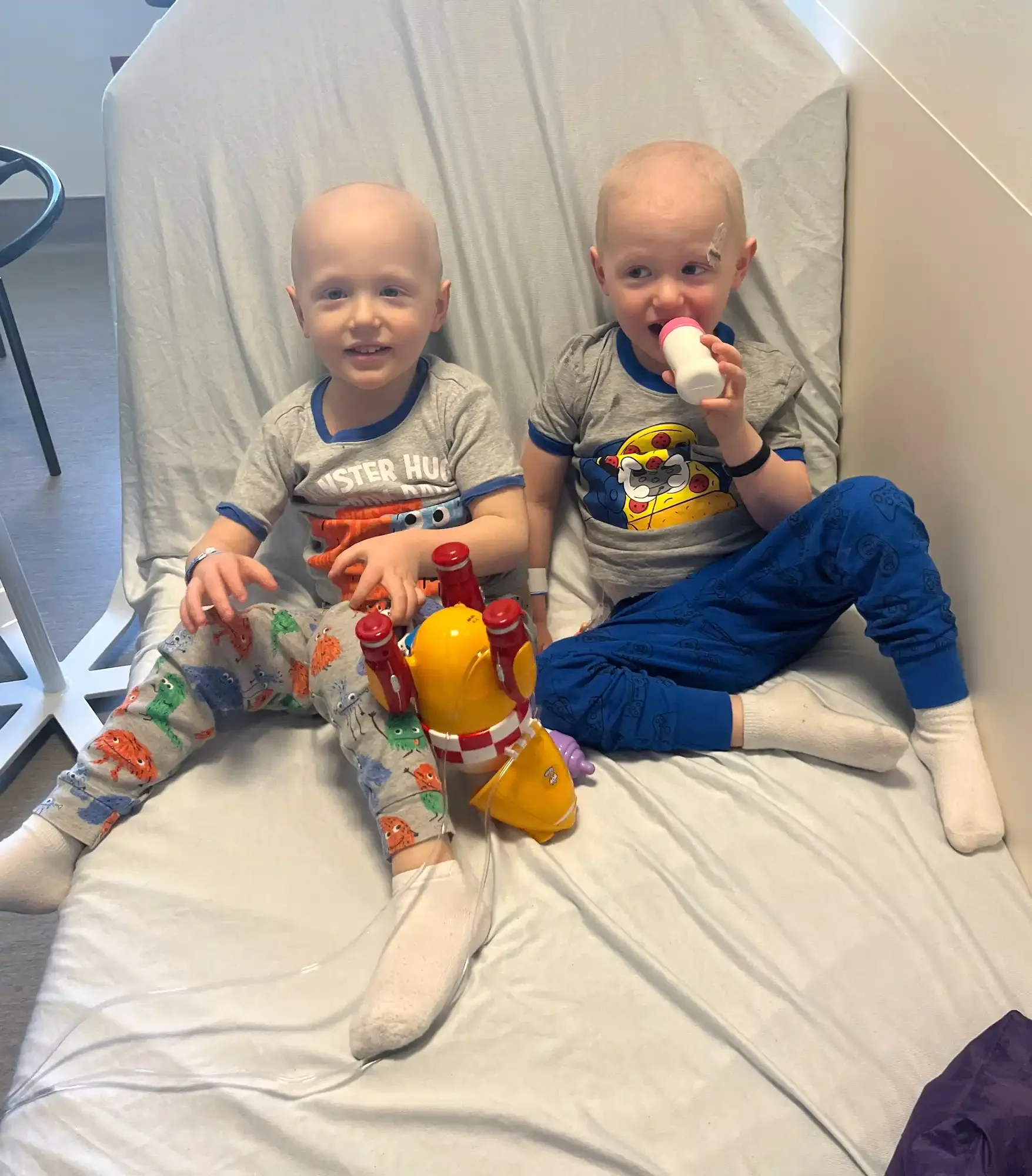 O caso chamou a atenção da equipe médica pela raridade de gêmeos idênticos passarem pelo tratamento ao mesmo tempo. Durante três anos, os meninos alternaram internações, sessões de quimioterapia e os desafios de efeitos colaterais. Weston, por exemplo, precisou reaprender a andar quatro vezes. “Eles não sabiam nada diferente. Achavam que todo mundo da idade deles ia ao hospital todos os dias, recebia quimio, precisava de sonda de alimentação”, disse Alisha.
