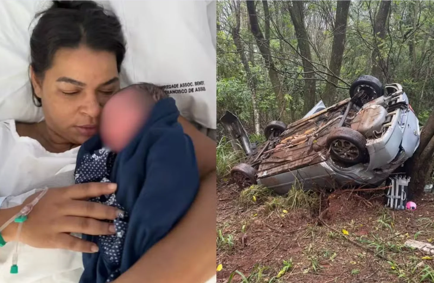 Uma gestação que estava perto do fim se transformou em uma história de sobrevivência e fé. A dona de casa Luciana Araújo, de 42 anos, seguia com o marido e a filha para a maternidade quando o carro da família capotou na PR-482, em Maria Helena, no noroeste do Paraná. O acidente aconteceu na manhã de 3 de outubro, a apenas duas semanas da cesariana marcada.