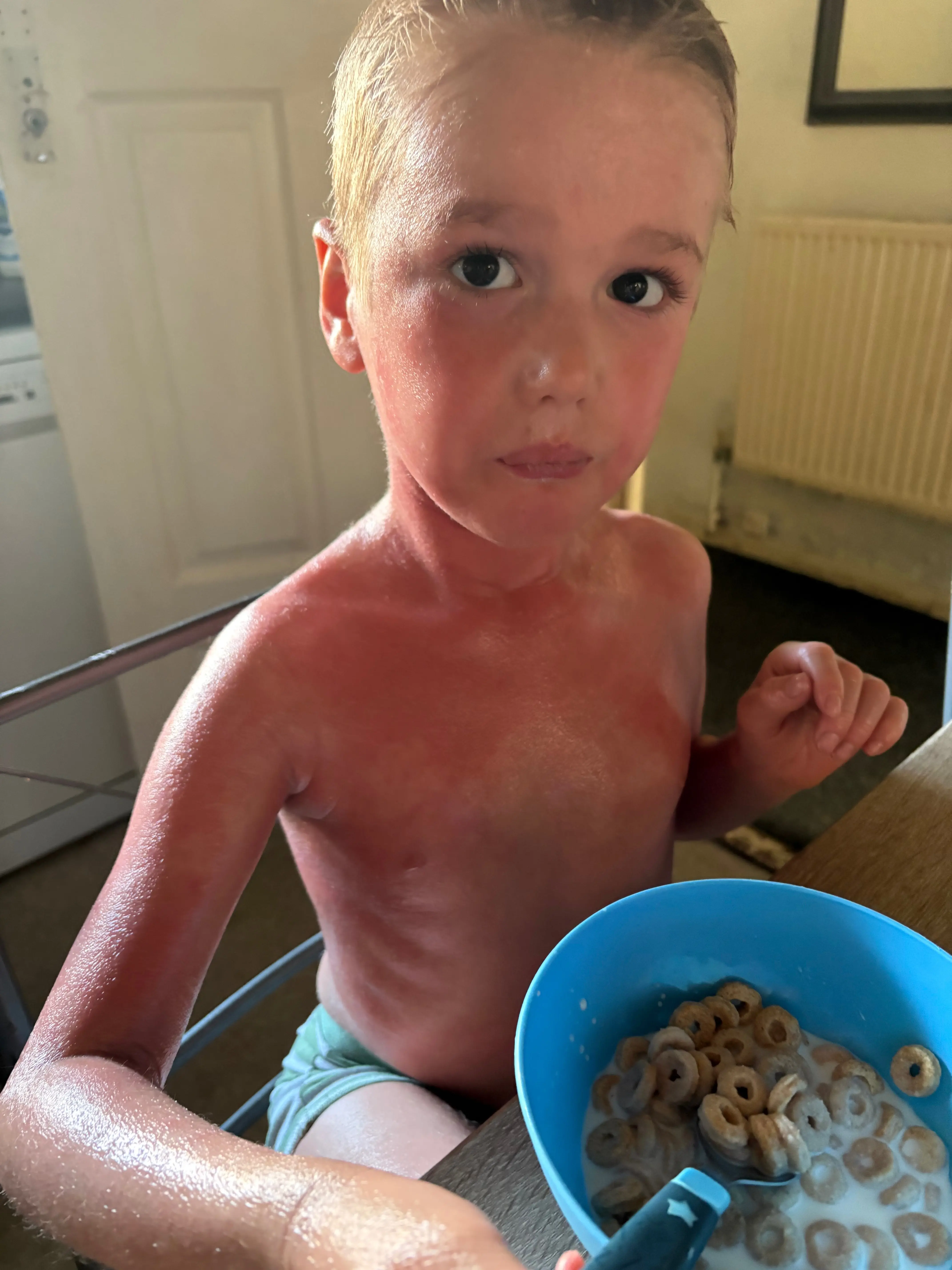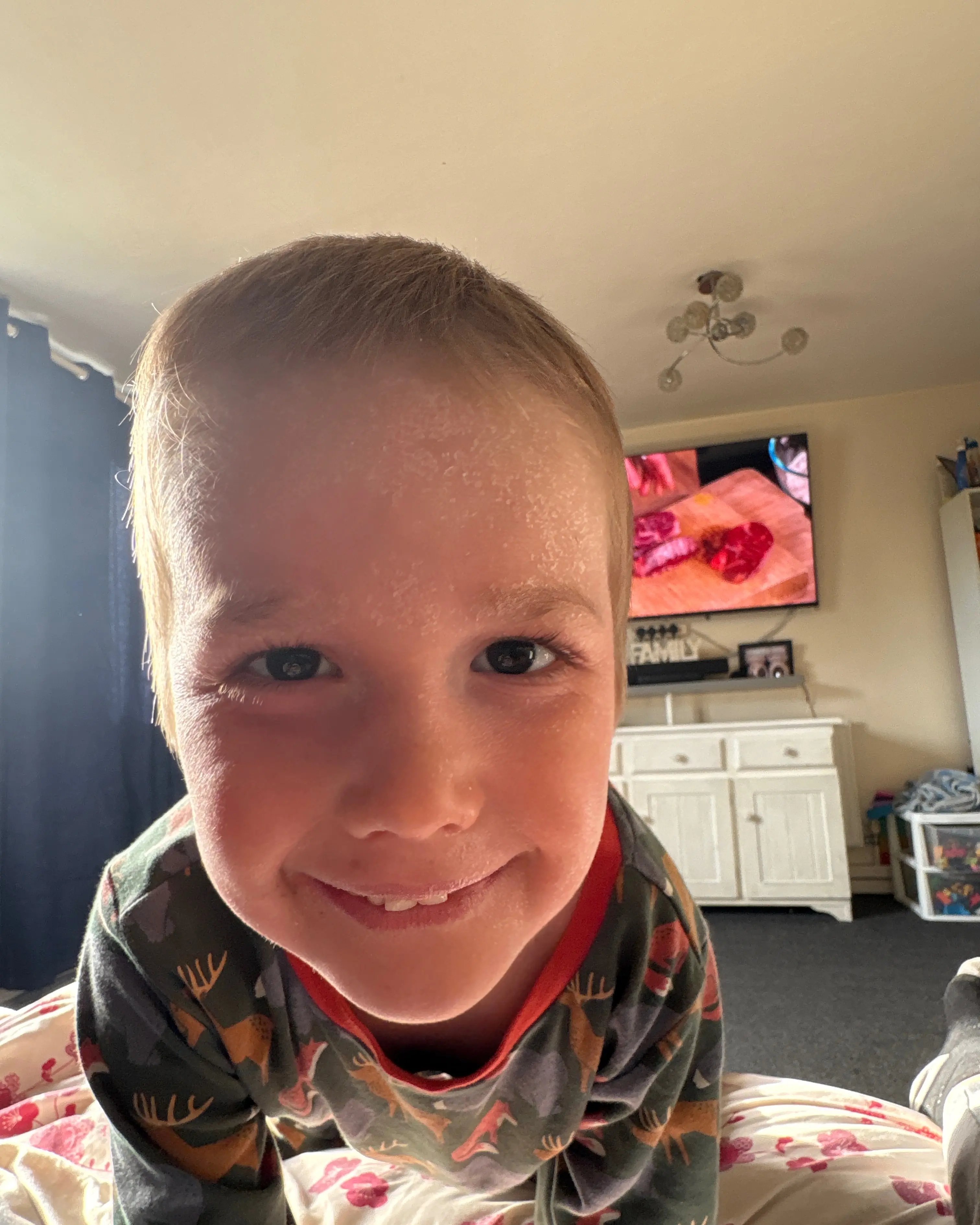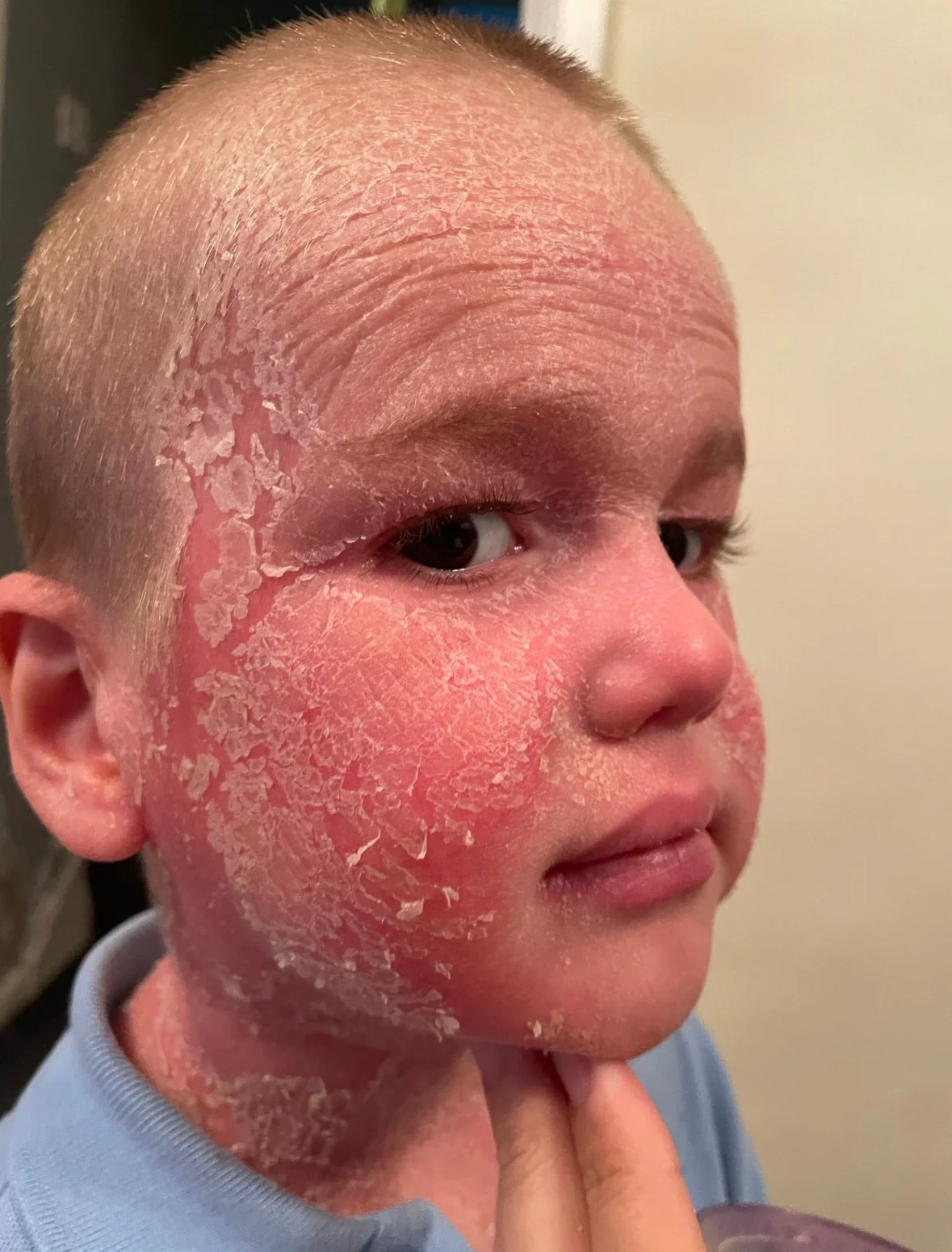 Após três semanas, Caiden recebeu alta, mas a rotina da família mudou completamente. “Ele precisava passar creme no corpo a cada duas horas, tomava banhos de 45 minutos e usava muitos medicamentos. A pele dele ficava vermelha, e quando descascava, ele chorava de dor”, contou.