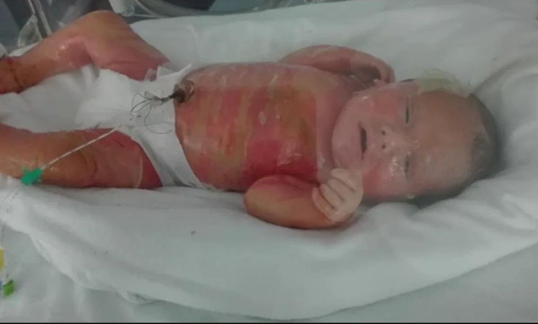 O bebê estava envolto por uma membrana espessa e cerosa, com as pálpebras viradas e os punhos fechados. “Eu o vi rapidamente e ele foi levado às pressas para os cuidados intensivos. Eu estava em pânico, sem saber o que estava acontecendo”, lembrou.