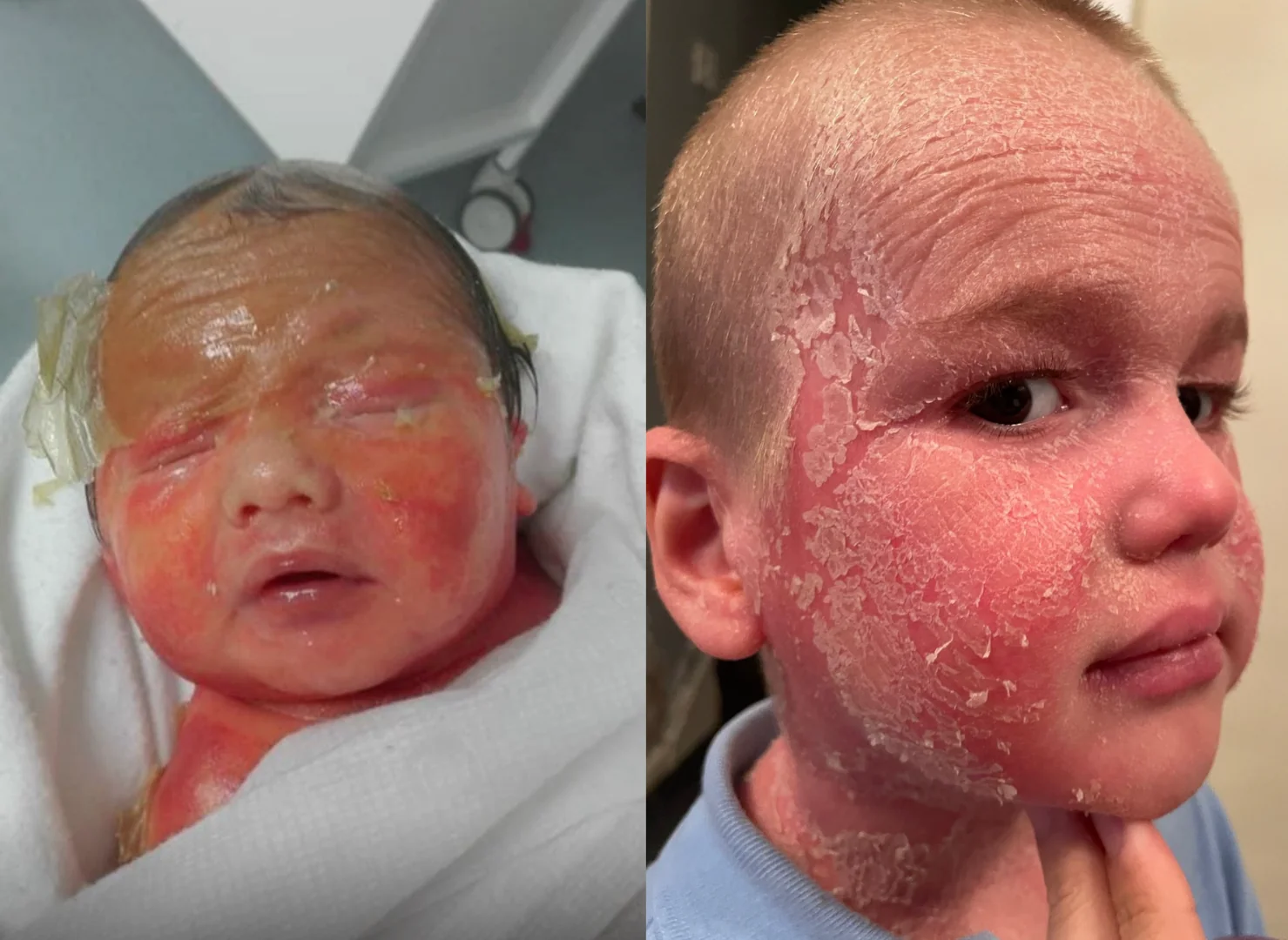 Os médicos diagnosticaram Caiden com ictiose congênita (CIE), uma condição genética que faz com que a pele cresça e descame rapidamente, dificultando o controle da temperatura corporal e aumentando o risco de infecções e desidratação. “O corpo dele era tão frágil que precisei esperar duas semanas para segurá-lo, e ainda assim com luvas. Eu não podia beijá-lo porque ele era muito vulnerável a infecções”, disse Leeanna.