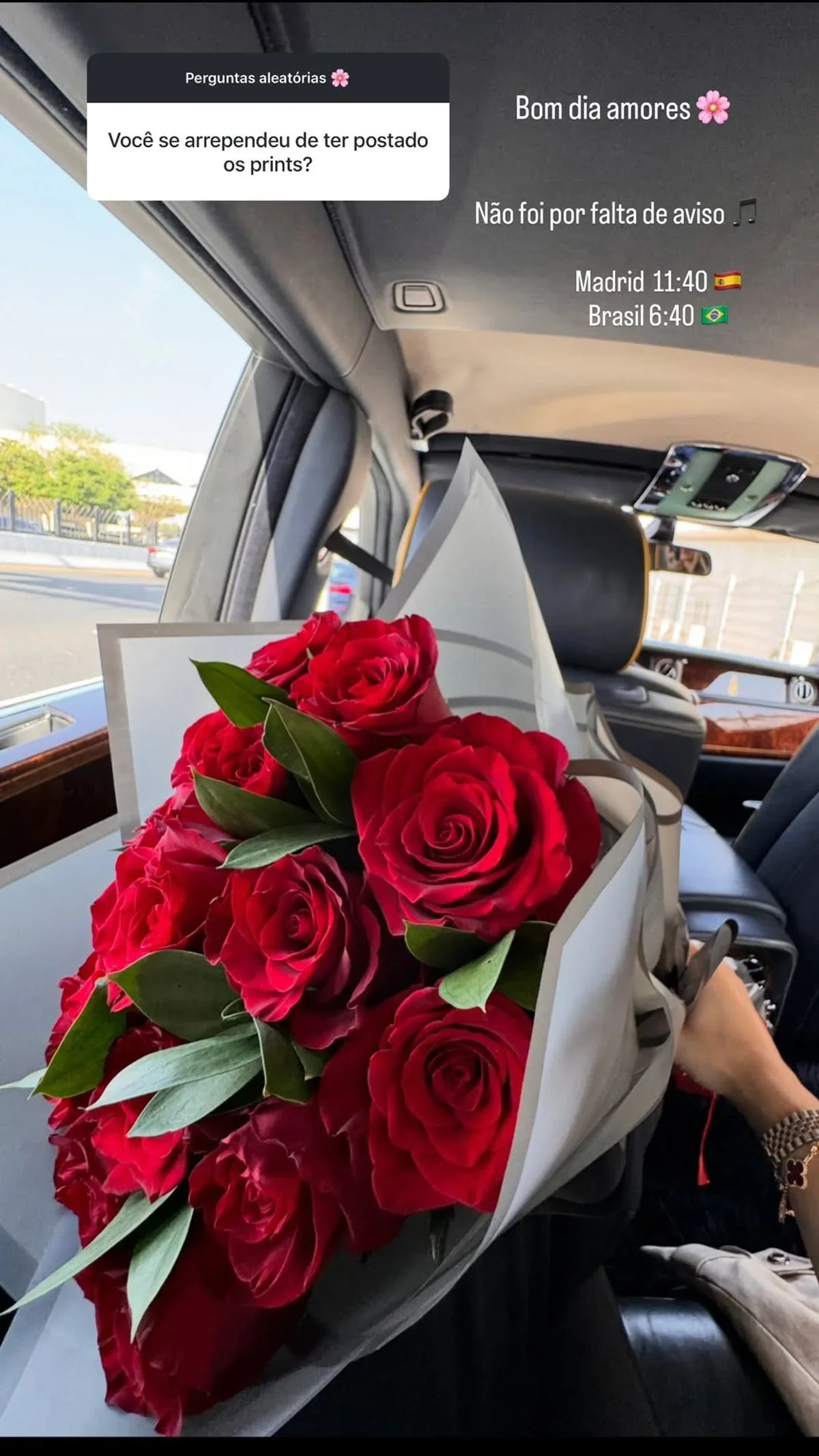Atualmente vivendo em Madrid, Day publicou uma imagem de um buquê de flores acompanhada da frase enigmática: “Não foi por falta de aviso.” A publicação foi interpretada por seguidores como uma possível indireta ao casal, especialmente após o pedido de desculpas público feito por Vini Jr.