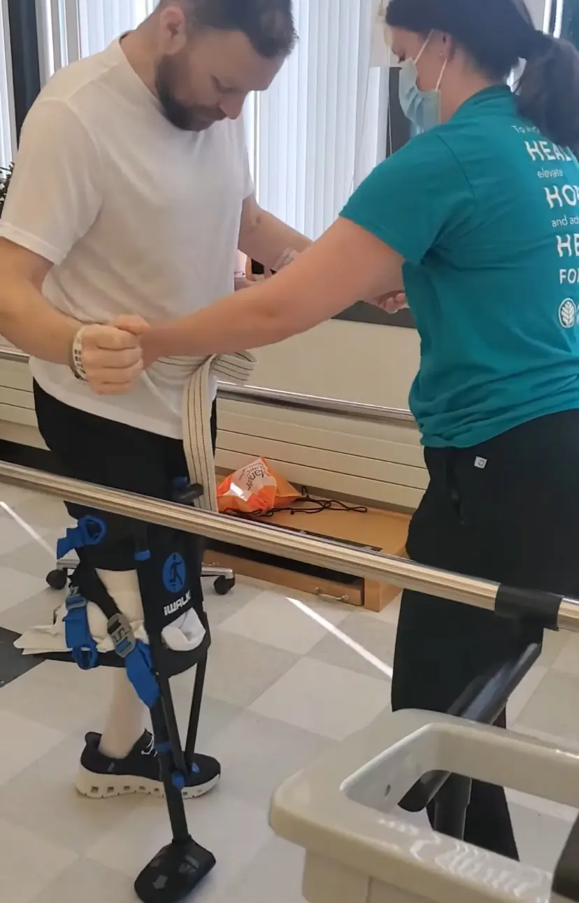 Durante o tratamento, os fisioterapeutas chegaram a recriar uma simulação de casamento para ajudá-lo a treinar a caminhada até o altar e o momento da primeira dança. “Basicamente simulamos uma cerimônia completa, e ele pôde praticar. Em certo momento, o silêncio tomou conta da sala, todos ficaram emocionados”, contou a fisioterapeuta Kelsey Robinson.