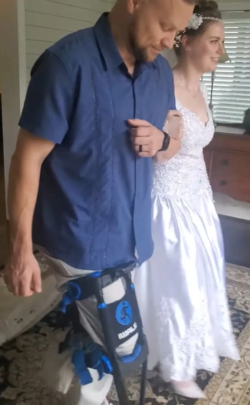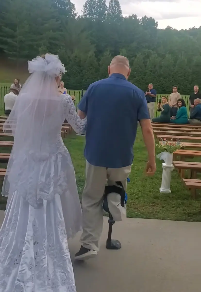 Chris Handy, de 50 anos, realizou o sonho de acompanhar a filha até o altar no dia do casamento. O que torna a história ainda mais marcante é que ele enfrentou a amputação de uma das pernas apenas alguns meses antes da cerimônia.
