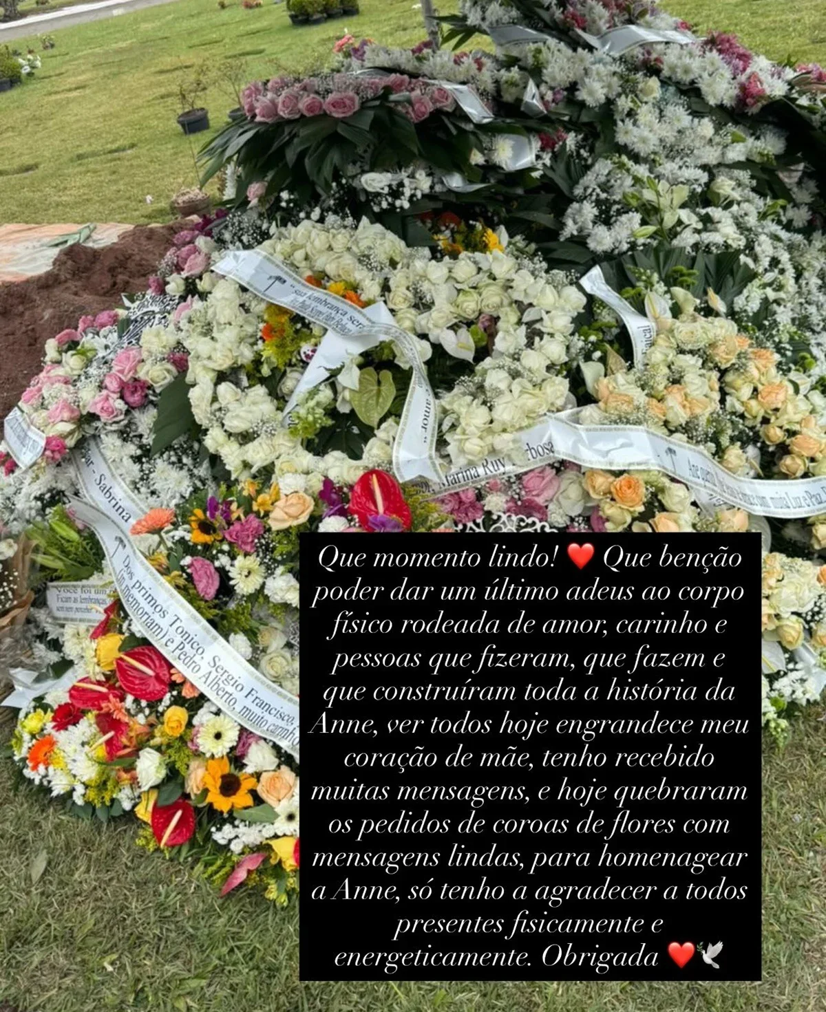 Em sua publicação, a modelo destacou o aprendizado e as bênçãos que vivenciou nas semanas seguintes à partida da filha. “Vamos celebrar a vida da nossa querida Anne, nos seus 30 dias de passagem”, escreveu. Ela também expressou gratidão pelas palavras de carinho e consolo que a ajudaram a atravessar esse momento difícil.