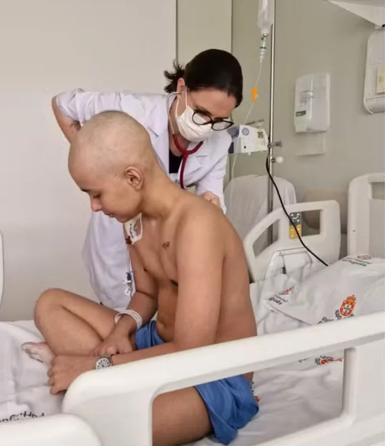 Mesmo diante do novo desafio, Bernardo se manteve confiante. “A médica o chamou, deu a notícia e explicou como seria dali para frente. Foi quando ele ficou sabendo que precisaria de um transplante de medula óssea”, disse a mãe. Exames mostraram que os pais e o irmão tinham apenas 50% de compatibilidade, e o painel de reatividade do adolescente era de 57%, o que elevava o risco de rejeição.