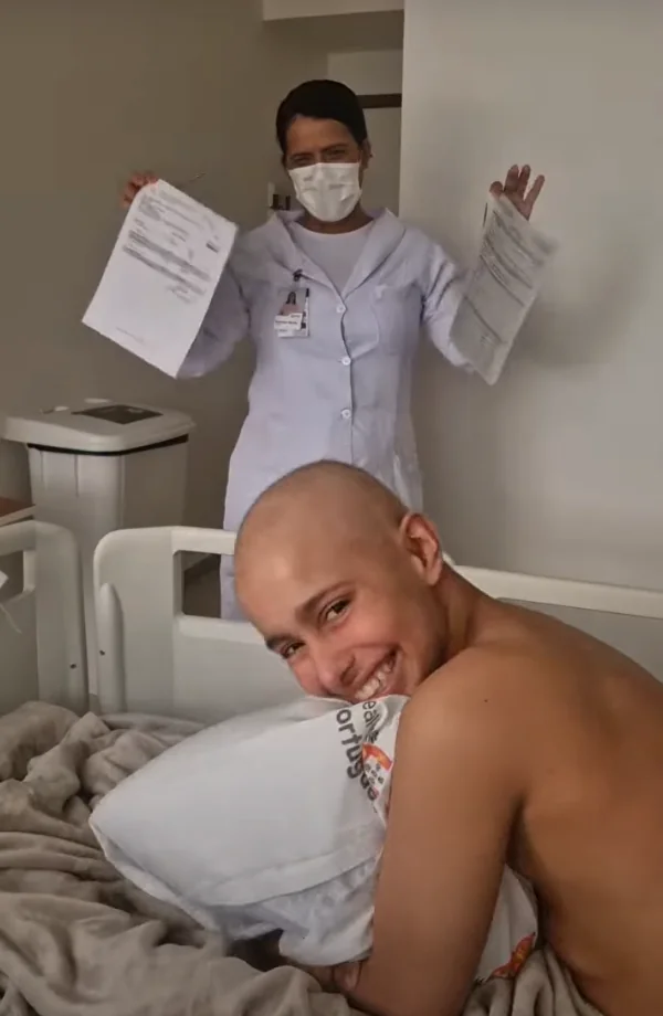 Um registro feito no momento em que Bernardo Souza, de 14 anos, deixa o hospital emocionou familiares e profissionais de saúde em Natal (RN). O estudante comemorou a tão esperada alta médica após dois anos de tratamento contra a Leucemia Linfoblástica Aguda (LLA), diagnóstico recebido em janeiro de 2023. O transplante de medula óssea, realizado com material de um doador polonês, marcou o fim de uma longa jornada e o início de uma nova fase.