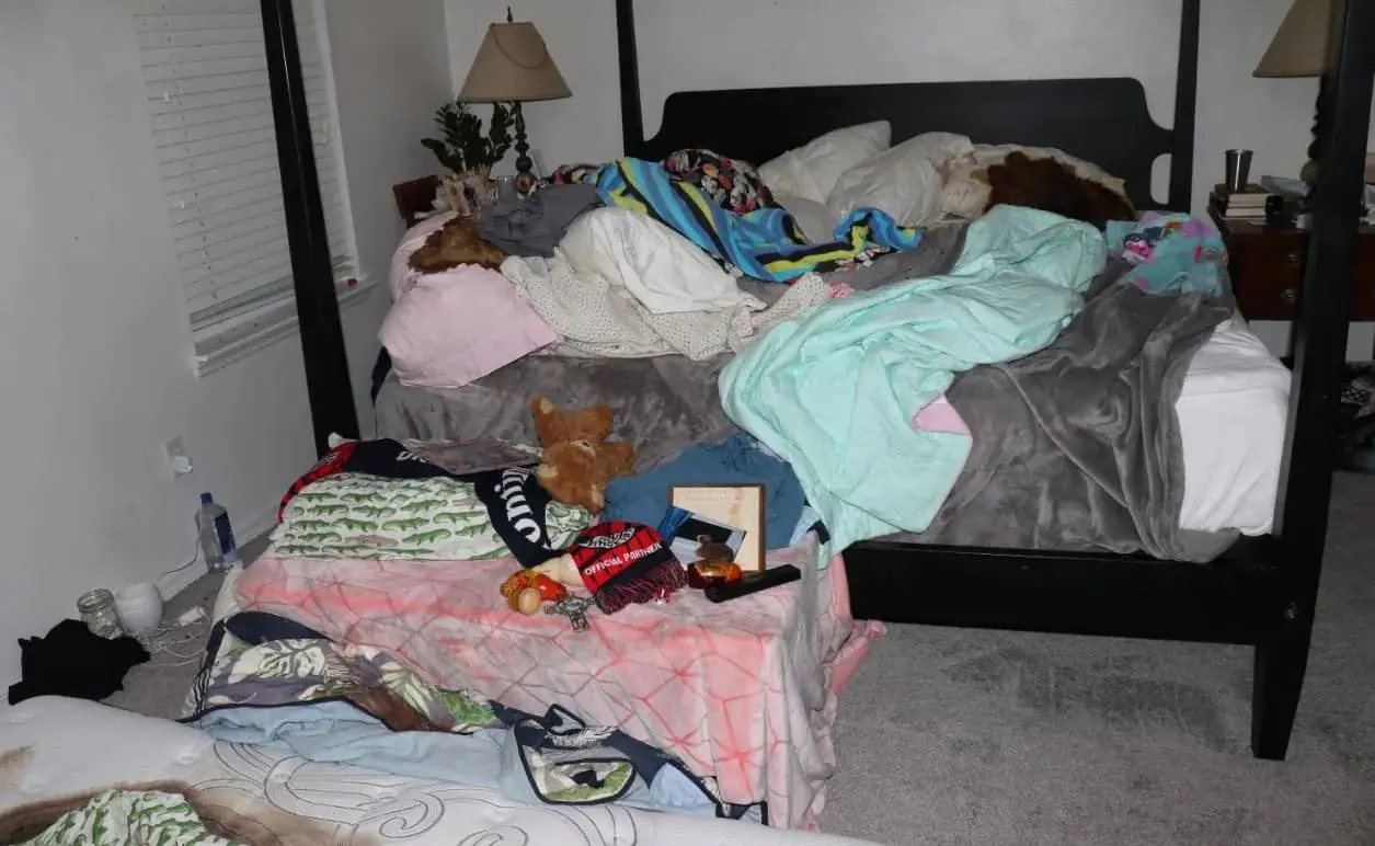 Ao entrarem na casa, após o homem demorar a responder, os agentes relataram um forte odor e perceberam que ele parecia desorientado. “Ele dizia que Megan estava dormindo e chegou a chamá-la, como se estivesse viva”, relatou a agente Melissa O’Neal. Quando subiram para o quarto principal, os investigadores encontraram os corpos de Megan, Aleksander e Tyler sobre a cama. Zoe foi localizada em seguida, enrolada em um cobertor aos pés da mãe.
