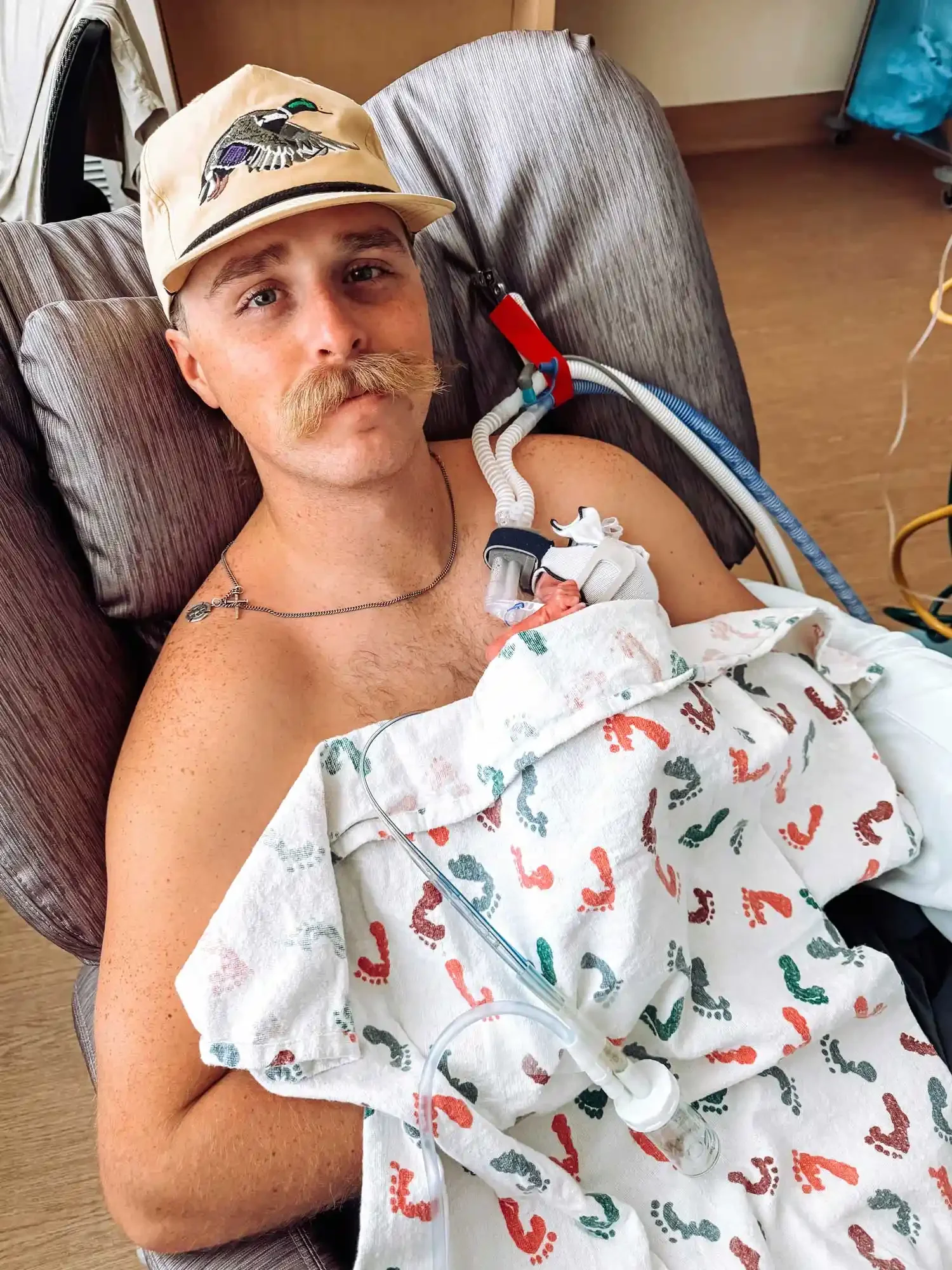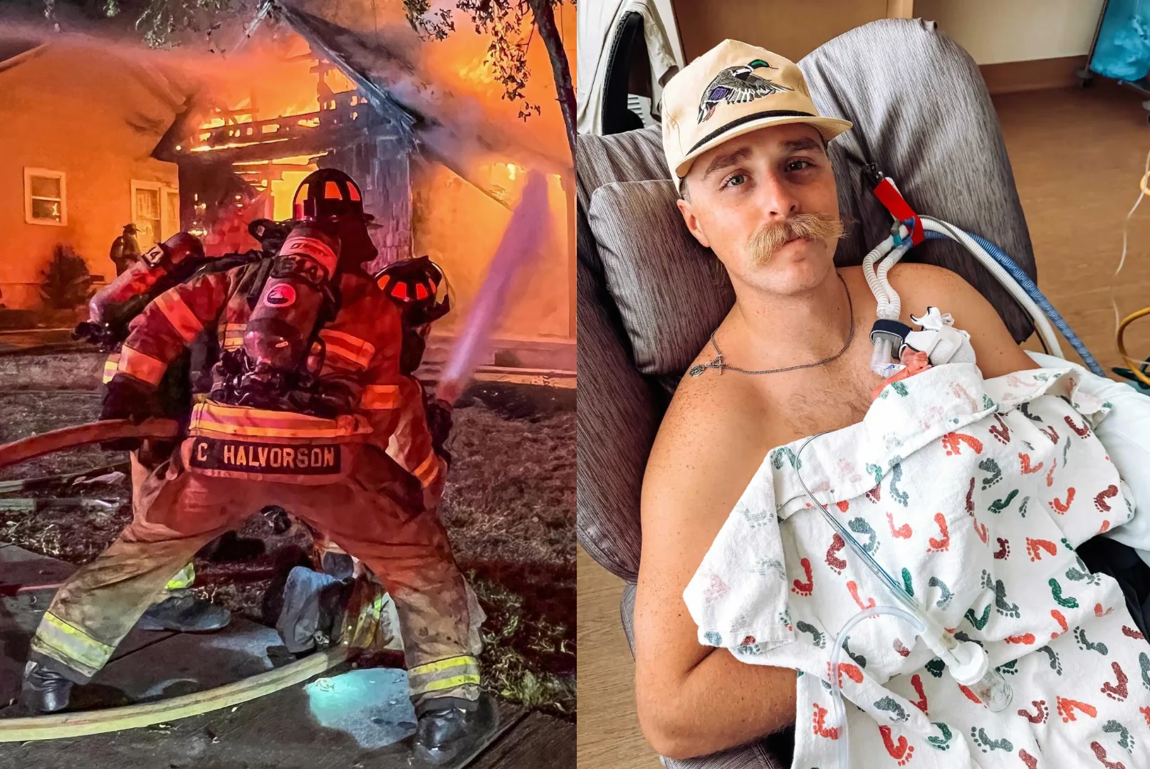 O bombeiro texano Caleb Halvorson, de 26 anos, viveu semanas de angústia enquanto enfrentava uma luta paralela à do filho, Hudson, nascido com apenas 27 semanas de gestação. Enquanto o bebê permanecia internado na UTI neonatal, o pai sofreu queimaduras e fraturas durante o combate a um incêndio, em setembro deste ano, quando a estrutura de uma garagem desabou sobre ele.