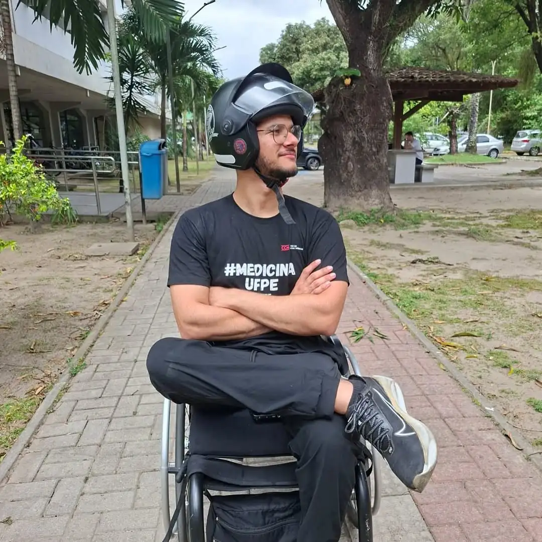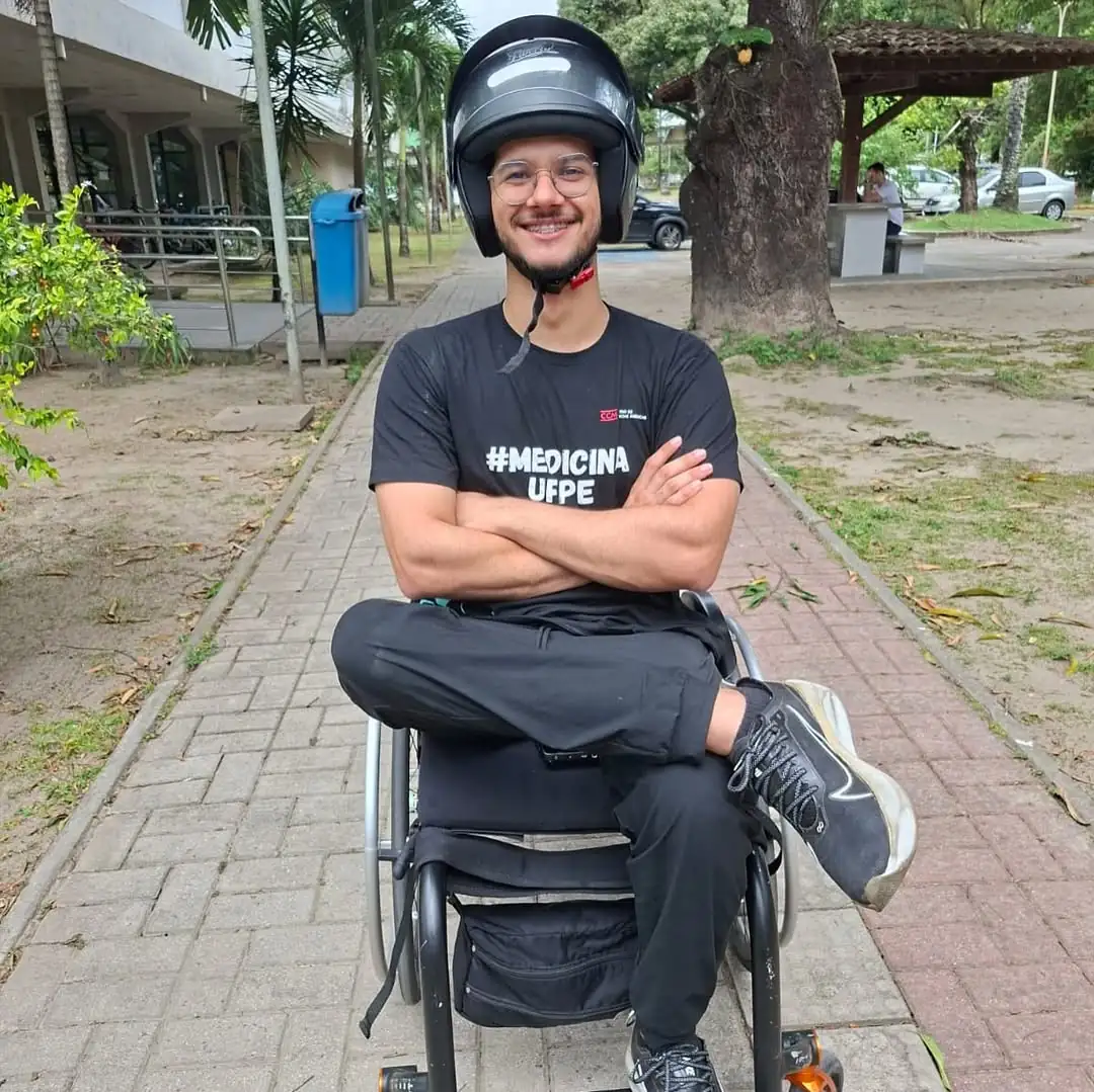 O estudante Heberth Vinícius Santana, de 21 anos, vive uma trajetória marcada por superação e resistência. Morador do Recife, ele teve a vida transformada na madrugada de 16 de dezembro de 2023, quando sofreu um grave acidente de carro durante uma tentativa de assalto em São Paulo, dias após fazer o Enem. O jovem, que sonhava cursar medicina, ficou paraplégico após sofrer traumatismo craniano e lesões na coluna.