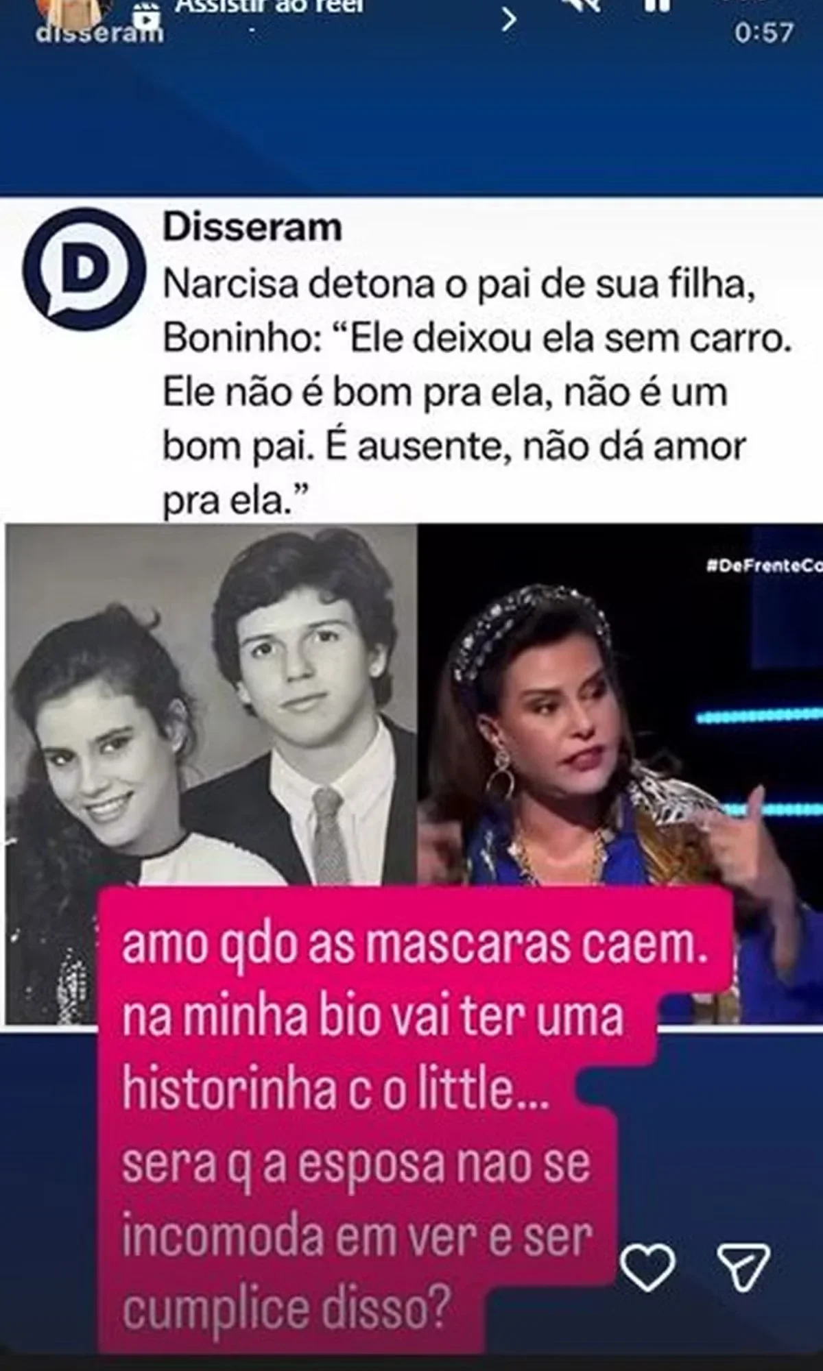As declarações de Narcisa repercutiram nas redes sociais, gerando reações, inclusive de Luana Piovani. A atriz afirmou que pretende incluir um episódio envolvendo Boninho e sua atual esposa, Ana Furtado, em sua futura autobiografia. Em uma publicação, Luana declarou: “Amo quando as máscaras caem. Na minha bio vai ter uma historinha com o Little… [Boninho]. Será que a esposa [Ana Furtado] não se incomoda em ver e ser cúmplice disso?”