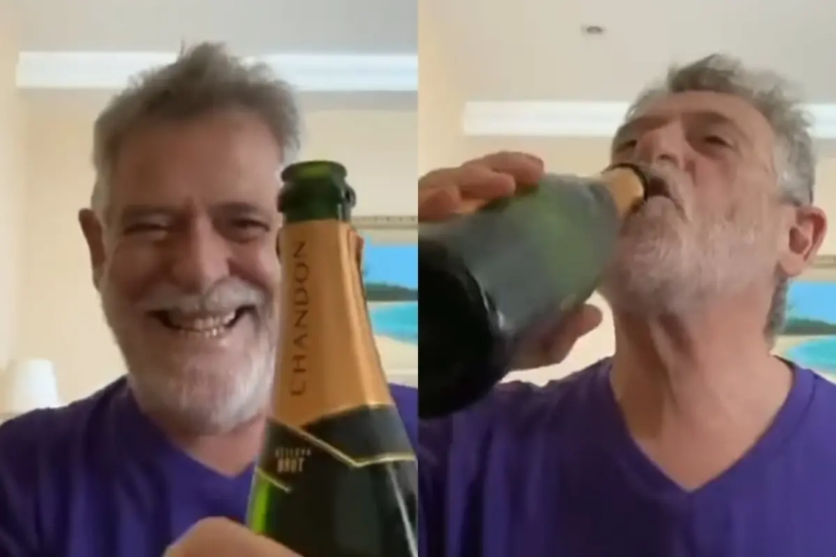 José de Abreu comemora com champanhe após prisão de Jair Bolsonaro (Foto: Instagram)