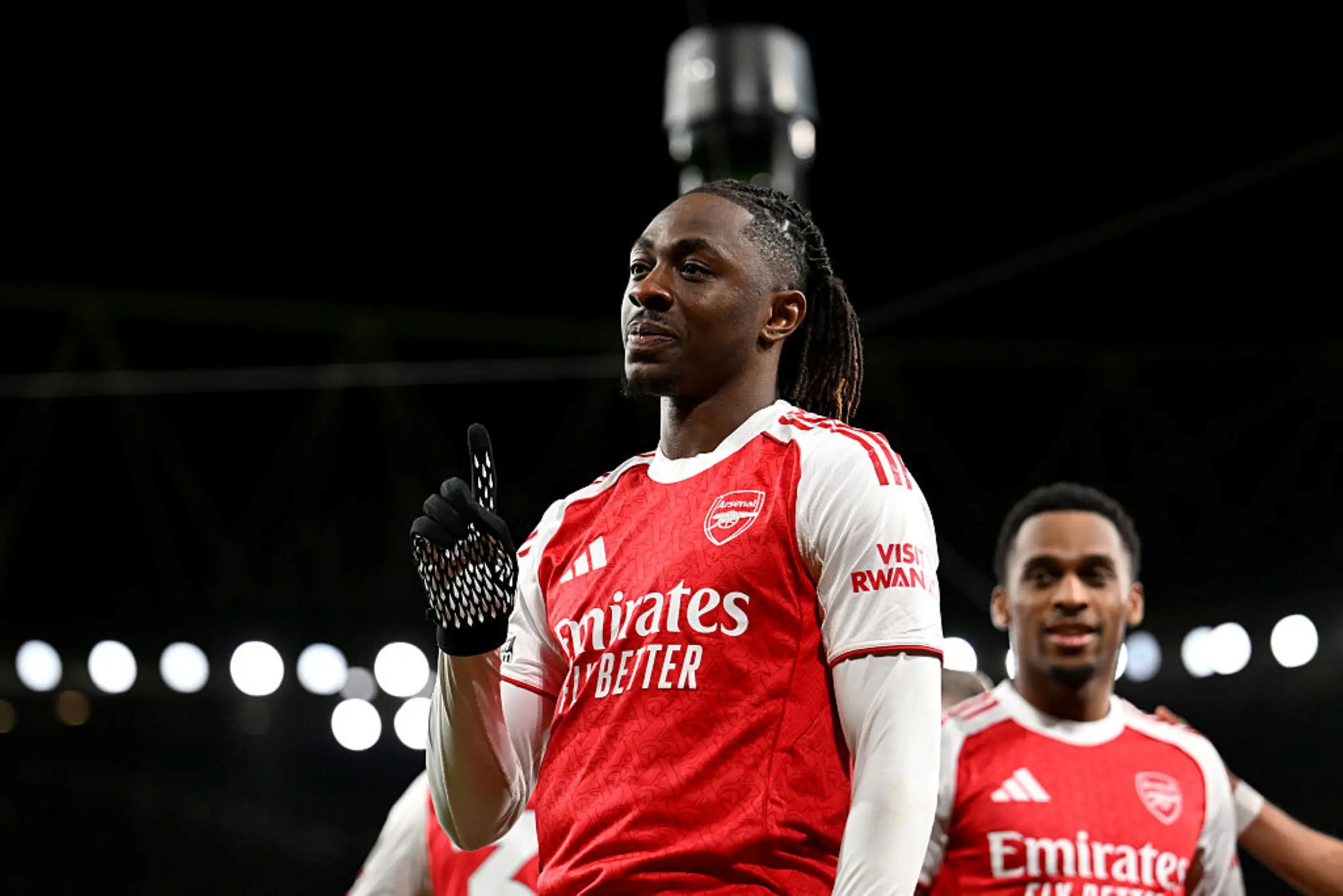 Eze comemora um dos seus três gols na vitória do Arsenal sobre o Tottenham, no Emirates Stadium. (Foto: Instagram)