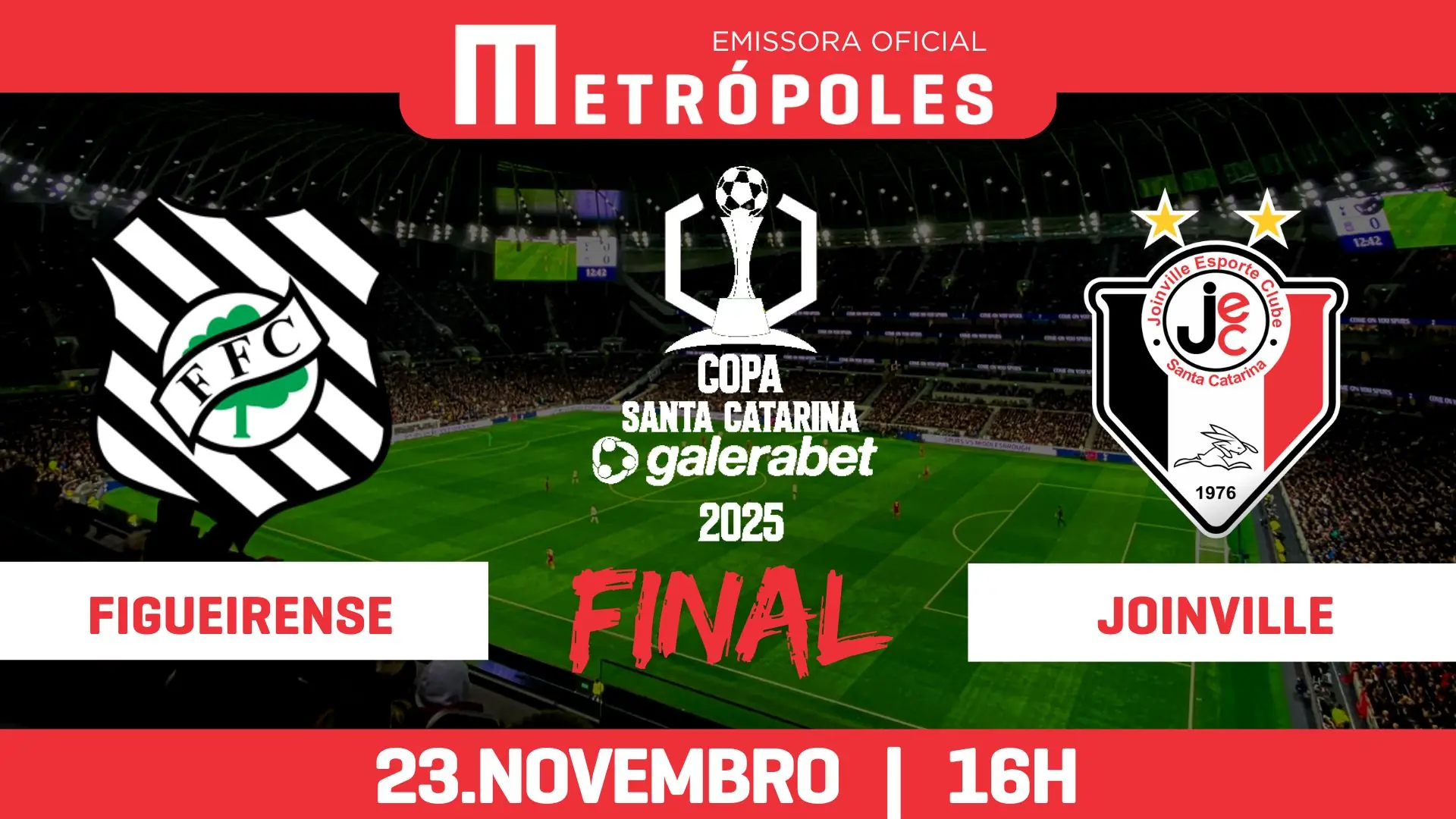 O canal Metrópoles Esportes fará a transmissão ao vivo, com imagens, da partida entre Figueirense e Joinville, válida pelo segundo jogo da final da Copa Santa Catarina 2025. O confronto acontece neste domingo, 23 de novembro, às 16h (horário de Brasília), e poderá ser acompanhado pelo YouTube oficial da emissora.