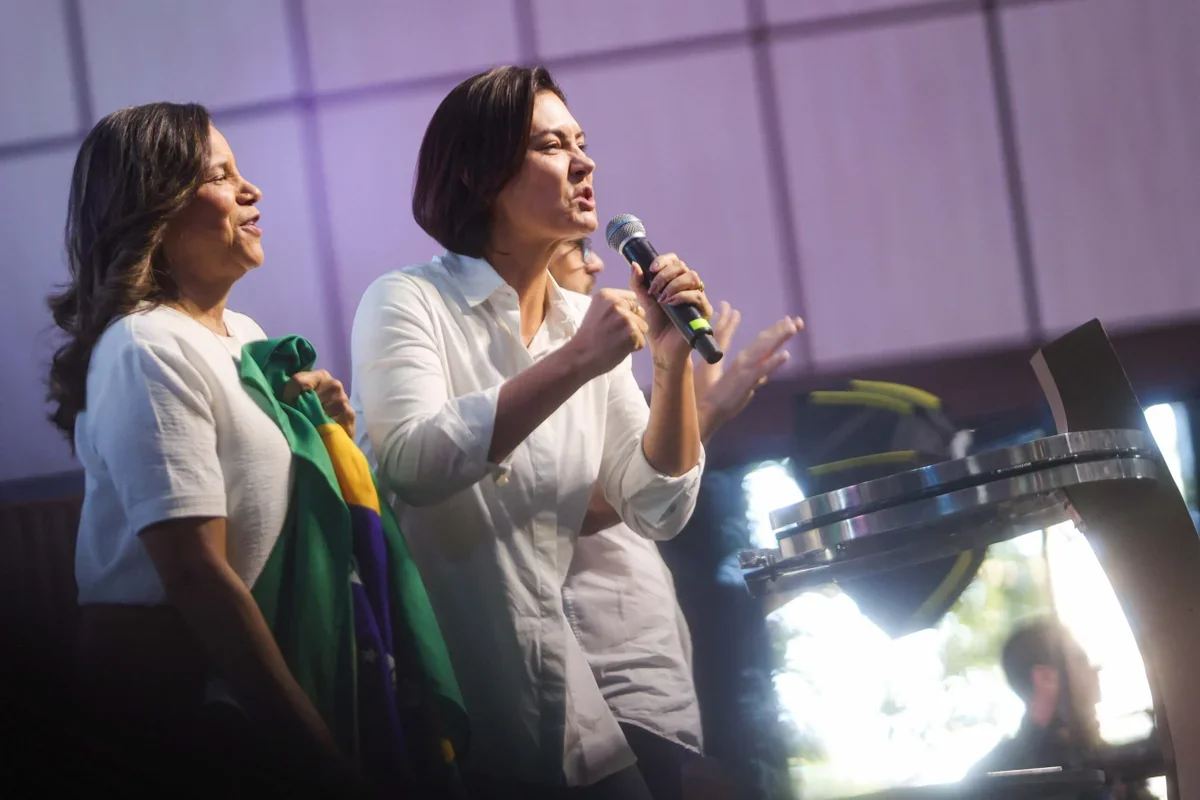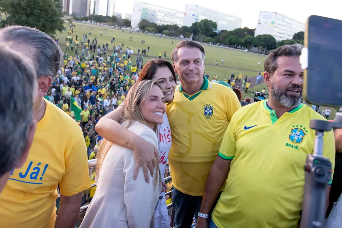 Michelle Bolsonaro estava no Ceará participando de um evento do PL Mulher quando soube da prisão do marido. Ela retornou a Brasília em um avião particular e foi recepcionada no aeroporto pela vice-governadora do Distrito Federal, Celina Leão (PP). Em seguida, publicou em seu perfil no Instagram um versículo bíblico do Salmo 121.