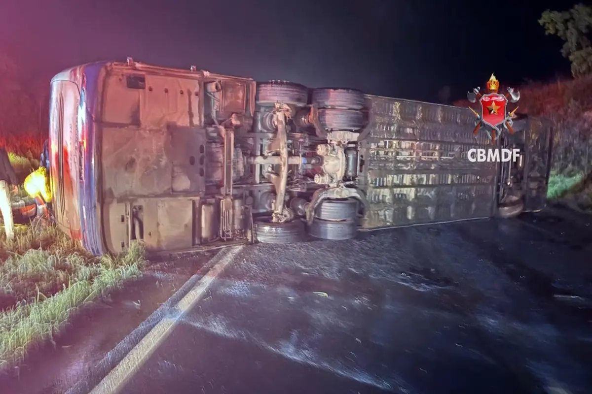 Um acidente envolvendo um ônibus de viagem e um caminhão guincho deixou 27 pessoas feridas na noite de domingo (23/11), na BR-020, próximo a Planaltina, no Distrito Federal. Três vítimas estão em estado grave, segundo informações do Corpo de Bombeiros Militar do Distrito Federal (CBMDF).