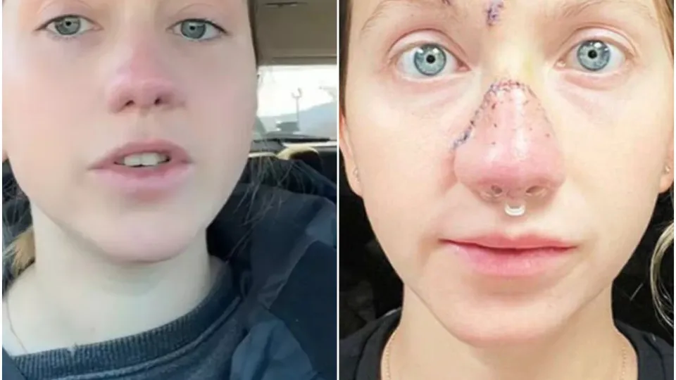 Levou semanas para que ela entendesse a gravidade: socorrida às pressas, foi internada e submetida inicialmente a limpeza da ferida e proteção das vias aéreas. A partir dali, começou um longo caminho de reconstrução. Os médicos optaram por um procedimento altamente complexo: criar um novo nariz a partir de pele da testa de Jordan, combinado com cartilagem retirada de costelas e orelhas para estruturar a cavidade nasal.