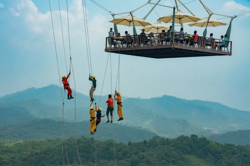 O “sky dining” é uma experiência popular em várias partes do mundo, onde os participantes fazem refeições presos a uma estrutura elevada por guindaste. Apesar de contar com medidas de segurança, este tipo de evento levanta preocupações sobre a manutenção dos equipamentos e os protocolos de emergência.