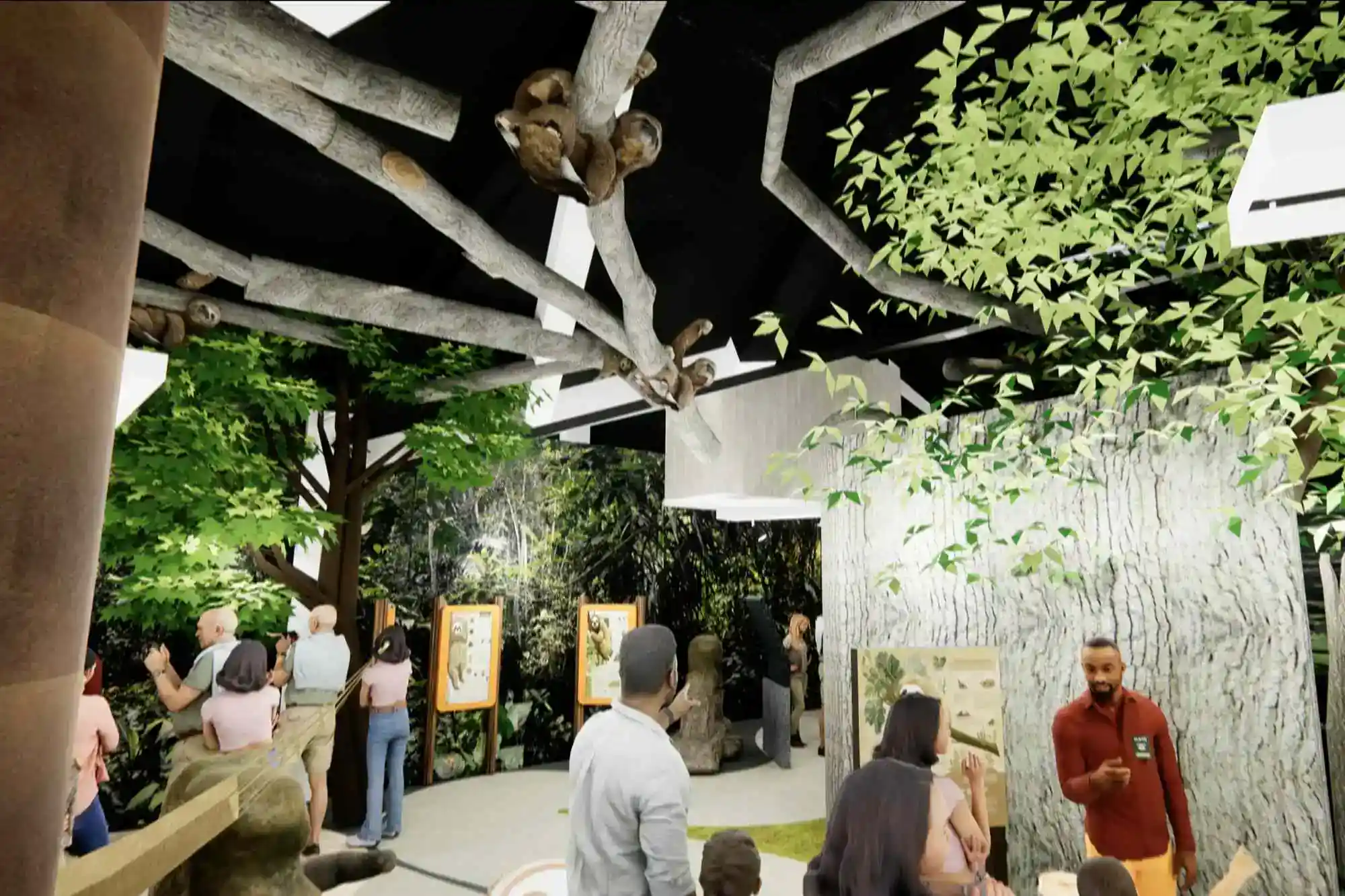 A atração oferecerá uma experiência guiada em ambiente estilo floresta tropical, sem gaiolas, grades ou divisórias de vidro, permitindo que o público entre diretamente na área das preguiças para observar seu comportamento natural.