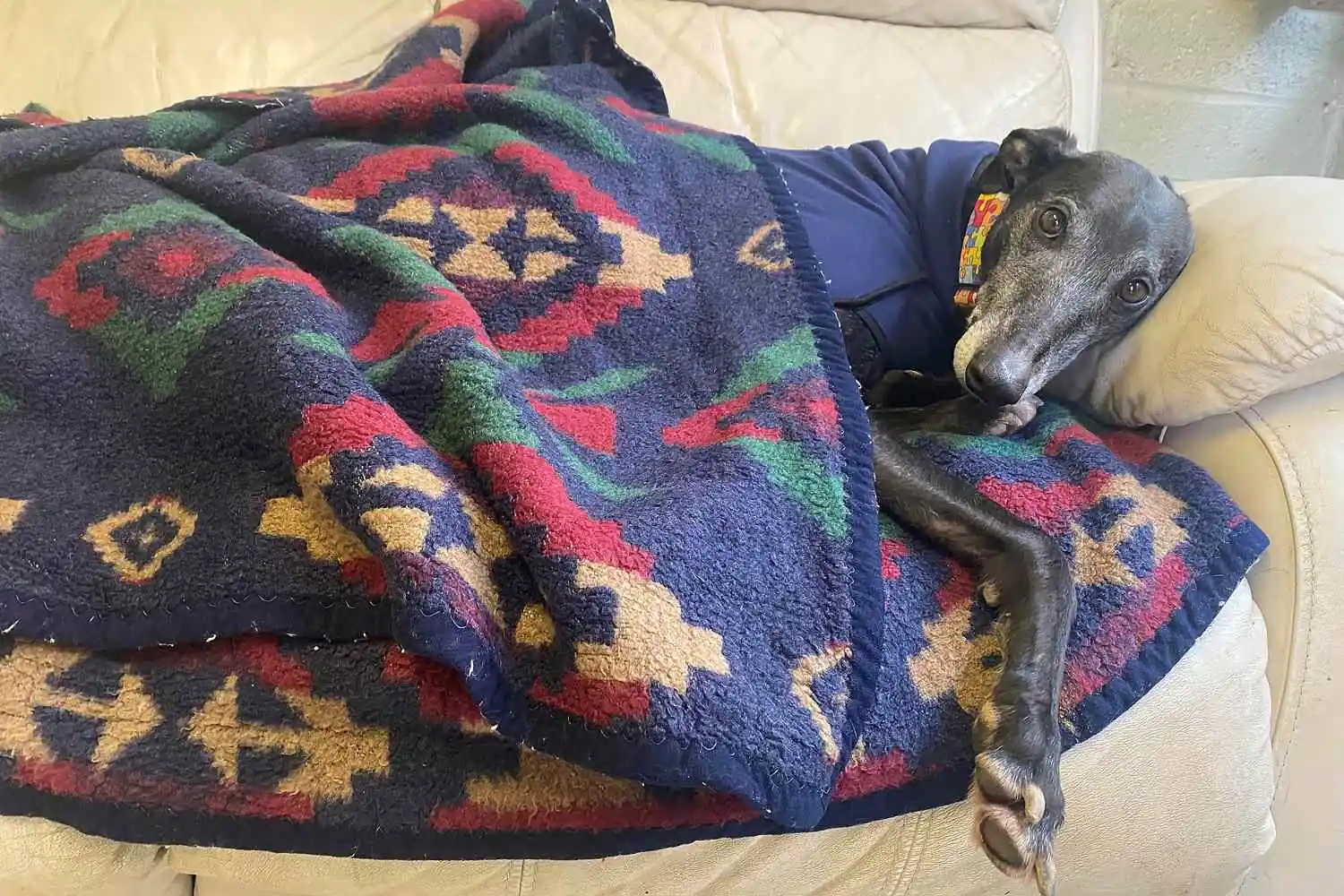 Bobby, ex-cão de corrida, descansa em seu novo lar após 1.064 dias no abrigo (Foto: Instagram)