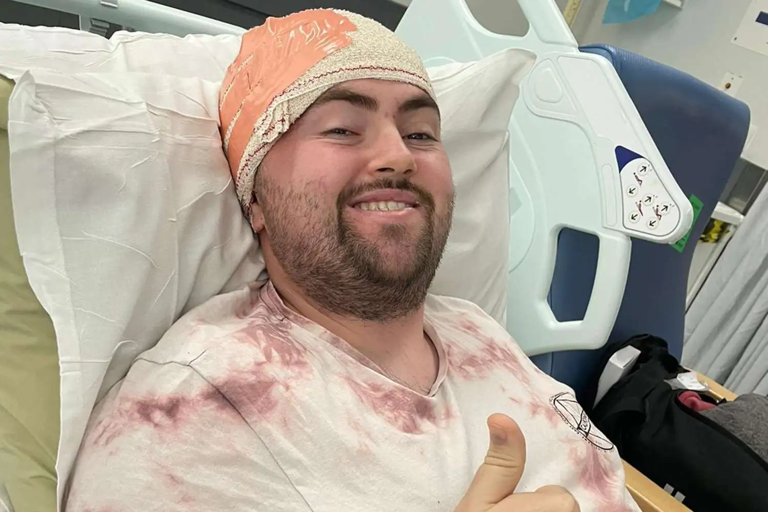Sean Sweeney dá um “joinha” no hospital após cirurgia cerebral (Foto: Instagram)