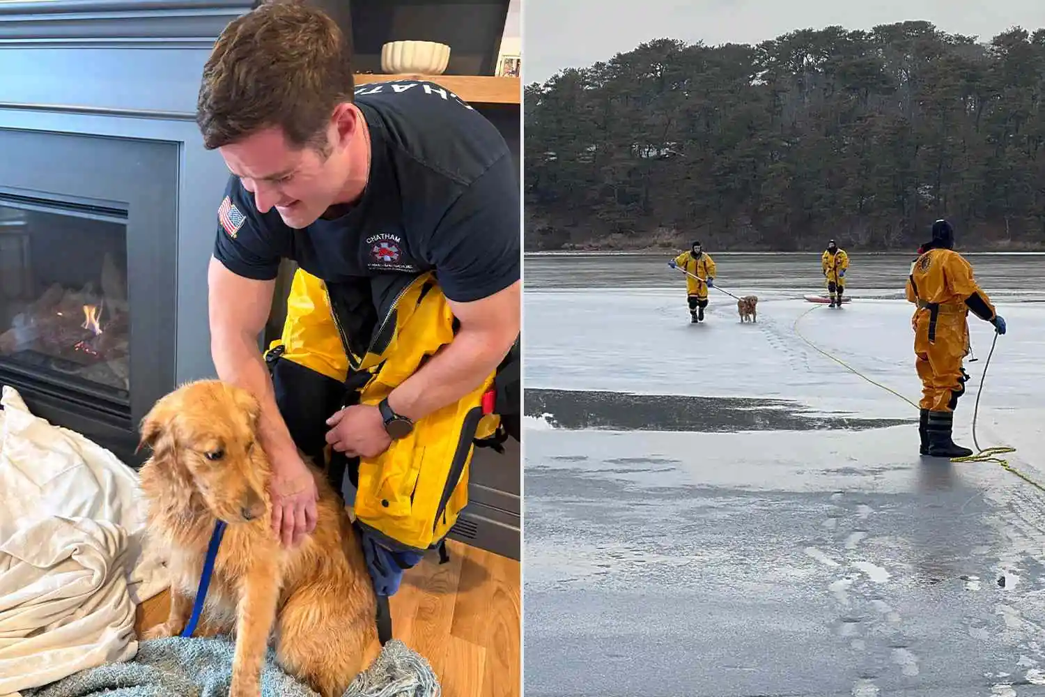 Bombeiros de Chatham resgatam golden retriever que caiu através do gelo (Foto: Instagram)