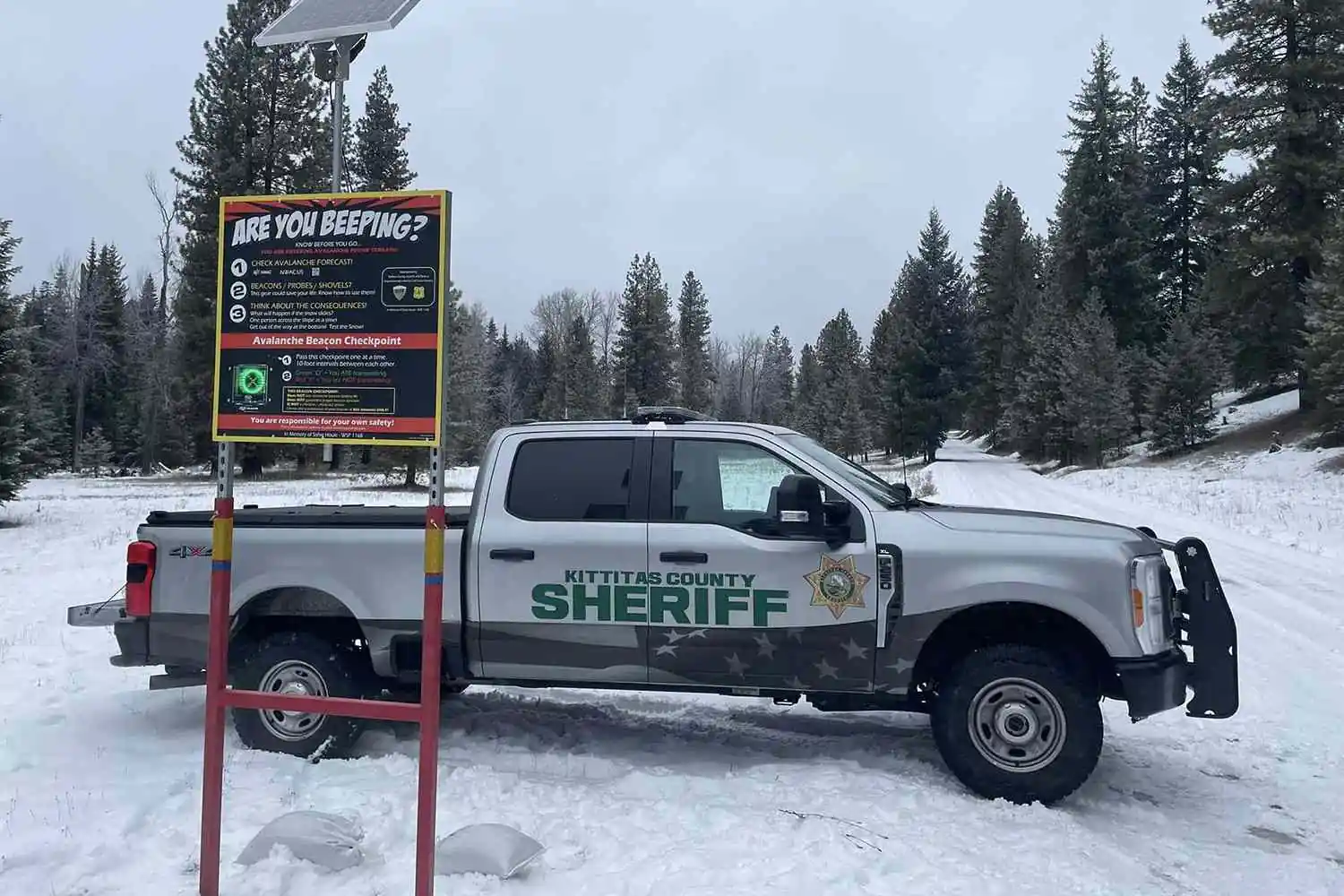 Viatura do xerife de Kittitas em área de avalanche nas montanhas de Washington (Foto: Instagram)