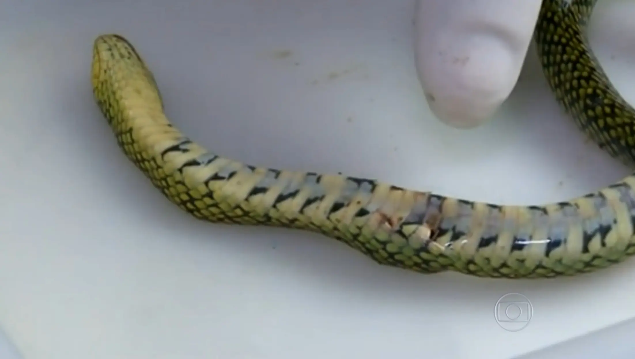 Embora a suspeita inicial da família fosse de que se tratava de uma jararaca, uma bióloga identificou o animal como sendo da espécie Erythrolamprus poecilogyrus, popularmente conhecida como cobra-verde. A espécie não é venenosa, o que contribuiu para o desfecho positivo do caso. A cobra não resistiu à mordida do garoto.