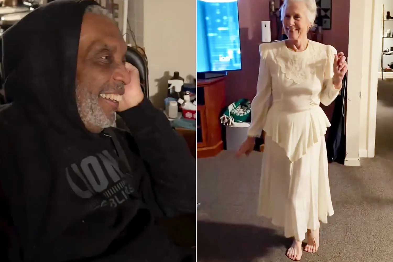 O momento foi registrado em um vídeo postado pela filha caçula, Kayla Turpin, de 33 anos, em 21 de novembro de 2025 no Instagram. Nas imagens, Chuck está no sofá da sala quando Barb surge vestida com a elegante criação em marfim de mangas longas e cintura peplum, típica dos anos 80. O marido faz um duplo movimento de surpresa, ajeita os óculos e declara comovido: “Você está deslumbrante!”, em seguida lhe dá um beijo carinhoso.