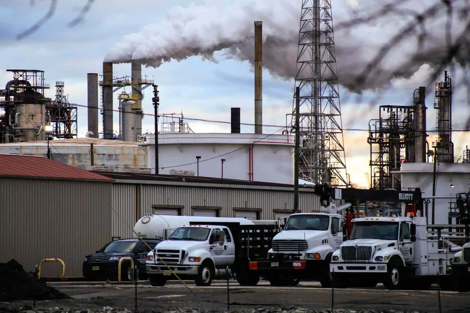 Tanques e caminhões na unidade Bayway Chemical Plant, em Linden (NJ), onde um trabalhador de 71 anos caiu em um reservatório de óleo mineral e não sobreviveu. (Foto: Kena Betancur/Bloomberg/Getty) (Foto: Instagram)