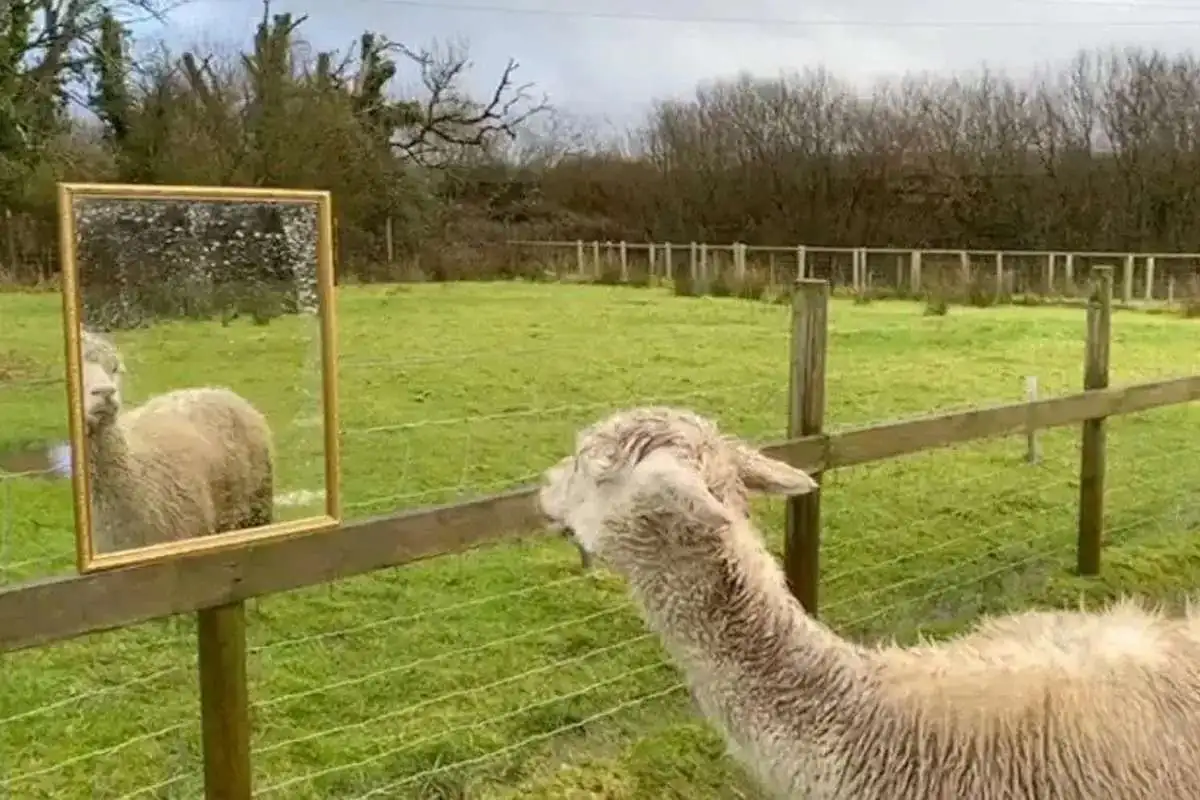 Giovanni, alpaca de 18 anos do Screech Owl Sanctuary & Animal Park em Saint Columb, Cornwall, ficou sozinho após a morte dos dois colegas de cercado. Para amenizar seu estresse e oferecer companhia simulada, Gary Zammit, diretor operacional do parque, decidiu instalar espelhos em seu espaço. Segundo Zammit, a ideia foi dar a impressão de que havia “outro alpaca” por perto, quebrando a sensação de isolamento que acometeu o animal.