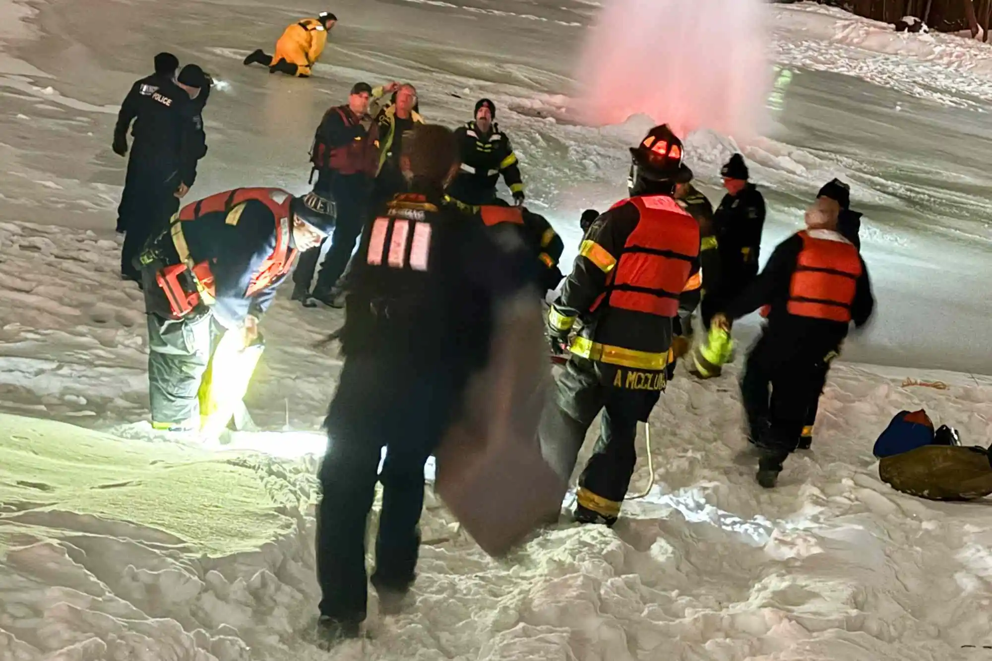 Em seguida, a equipe tática de resgate em gelo foi acionada e, em apenas três minutos, executou a manobra final que retirou o homem do lago congelado. Ele permaneceu preso no frio por cerca de 20 a 25 minutos, tempo em que correu sério risco de hipotermia e outras complicações. Após o resgate, foi levado em estado crítico ao Methodist Hospital, onde rapidamente evoluiu para condição estável.