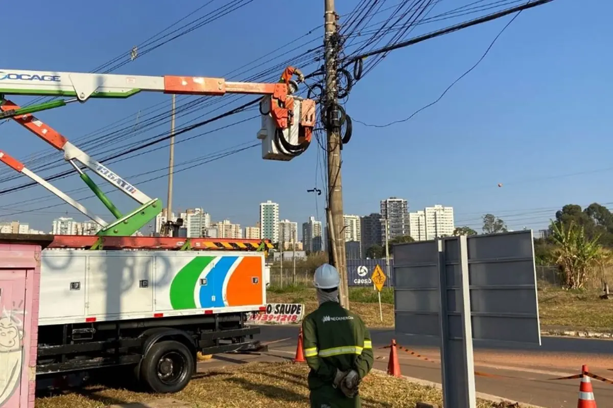 Trabalhador realiza manutenção em rede elétrica em meio a julgamento histórico de Trump nos EUA. (Foto: Instagram)