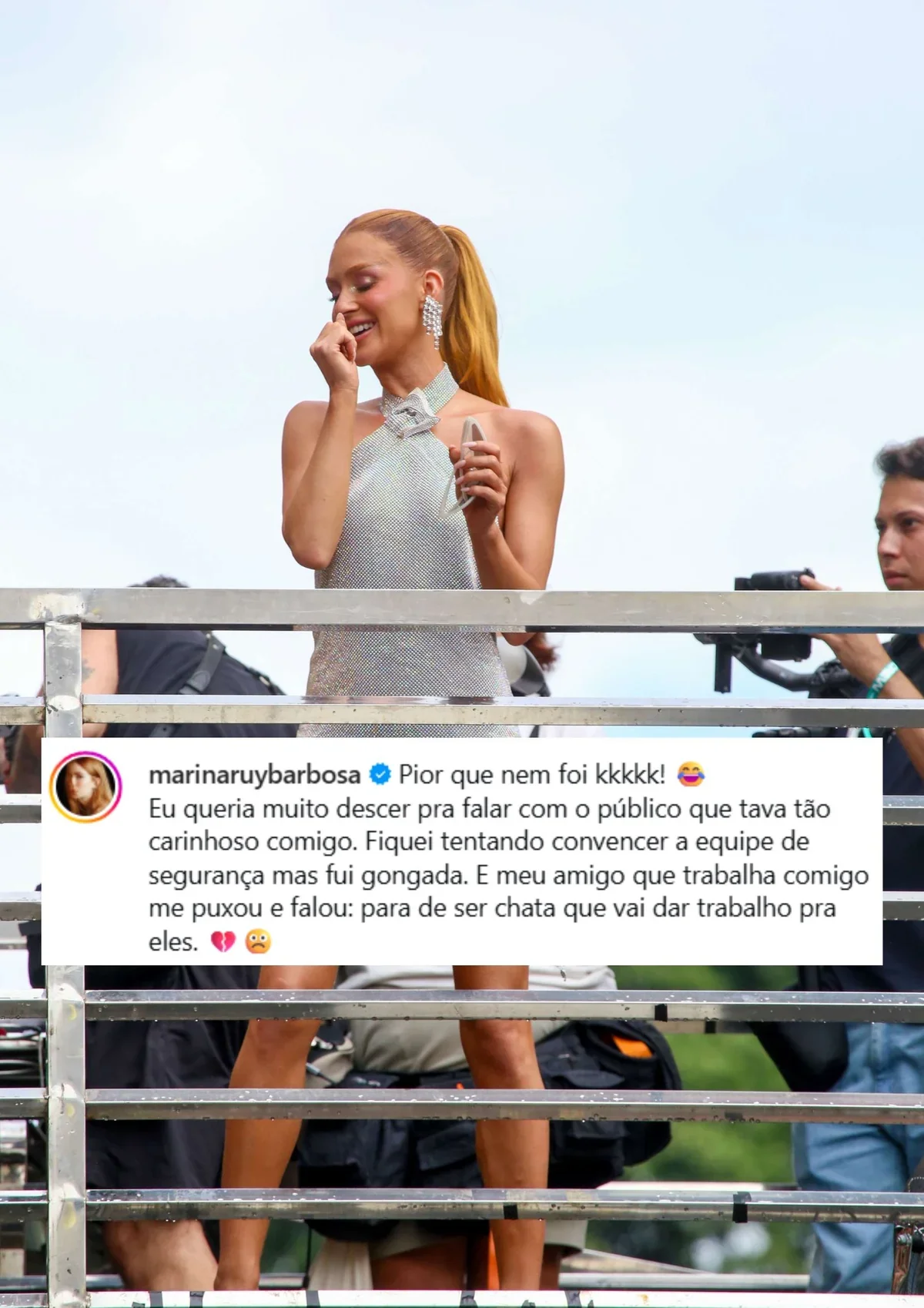 A atriz Marina Ruy Barbosa se viu no centro de uma polêmica recentemente, quando um vídeo viralizou nas redes sociais mostrando sua tentativa de descer do trio elétrico durante um evento. Segundo a própria Marina, a equipe de segurança a impediu de deixar o local, gerando uma série de reações entre os fãs e seguidores.