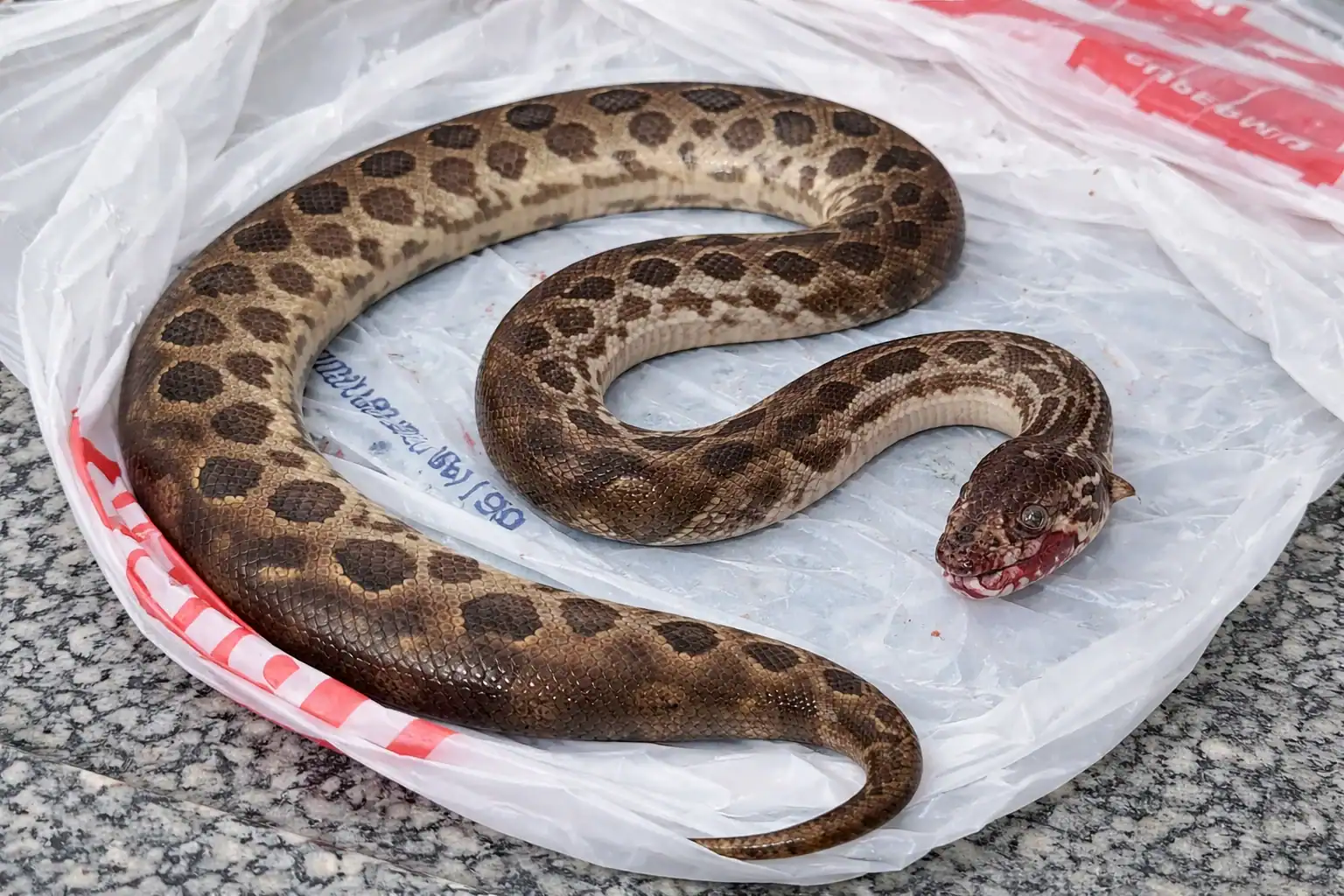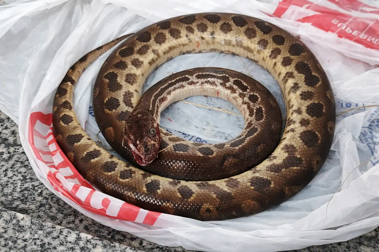 De acordo com o Corpo de Bombeiros, o homem caiu acidentalmente sobre a sucuri, que reagiu mordendo seu braço. No desespero para se desvencilhar, ele mordeu o corpo do animal e o puxou com força até conseguir se soltar. Após o embate, o homem matou a cobra e a levou consigo até o hospital para onde foi socorrido por uma equipe de resgate.