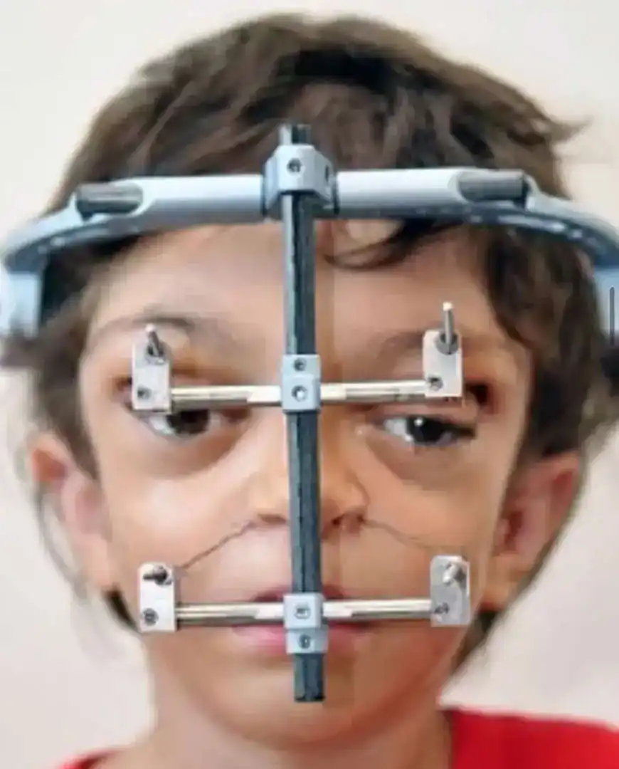 De acordo com o portal, o menino apresentava estenose craniofacial associada às deformidades visíveis, quadro que contribuiu para a indicação do procedimento. A cirurgia envolveu fraturas controladas dos ossos faciais para instalação de um distrator osteogênico, dispositivo utilizado para promover o crescimento ósseo progressivo e reposicionar estruturas comprometidas.