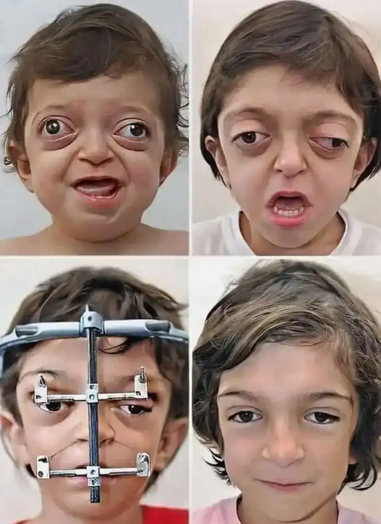 Fotos documentam o progresso cirúrgico de um menino com síndrome rara, submetido à reconstrução facial