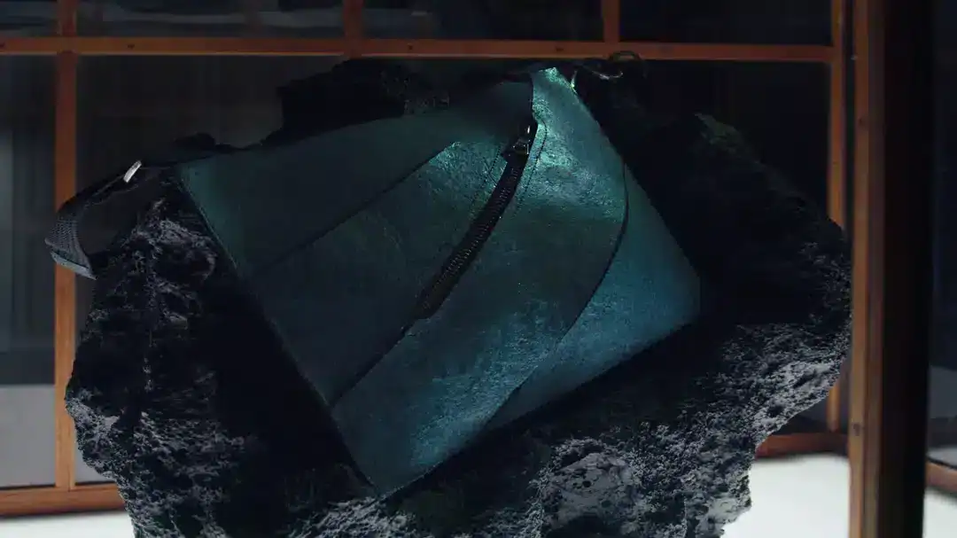 Bolsa de couro de T. rex sintético exposta no Art Zoo Museum: biotecnologia redefine o ultra luxo (Foto: Instagram)