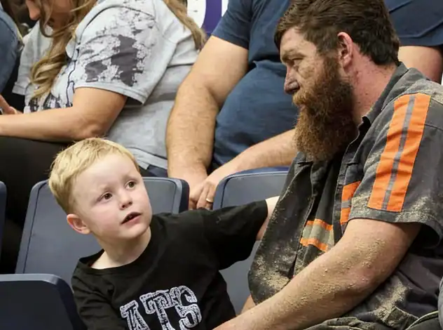 Um pai emocionou a internet ao demonstrar que a presença é mais valiosa que a aparência. Ele saiu diretamente do trabalho, ainda coberto de poeira, para não perder o jogo de basquete do seu filho de apenas 3 anos.
